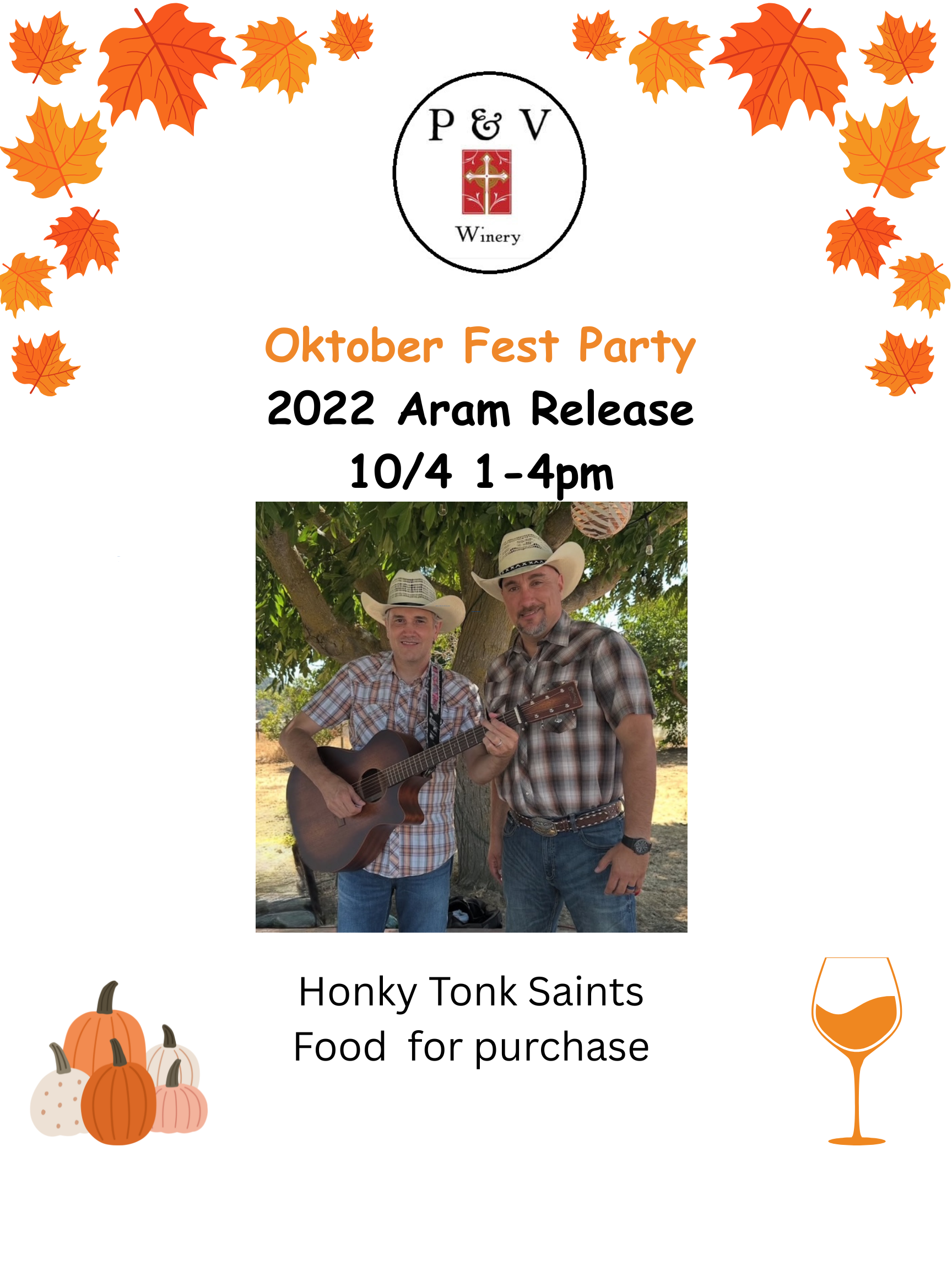 Come enjoy our new 2022 Aram reserve and this amazing country duo! Food options