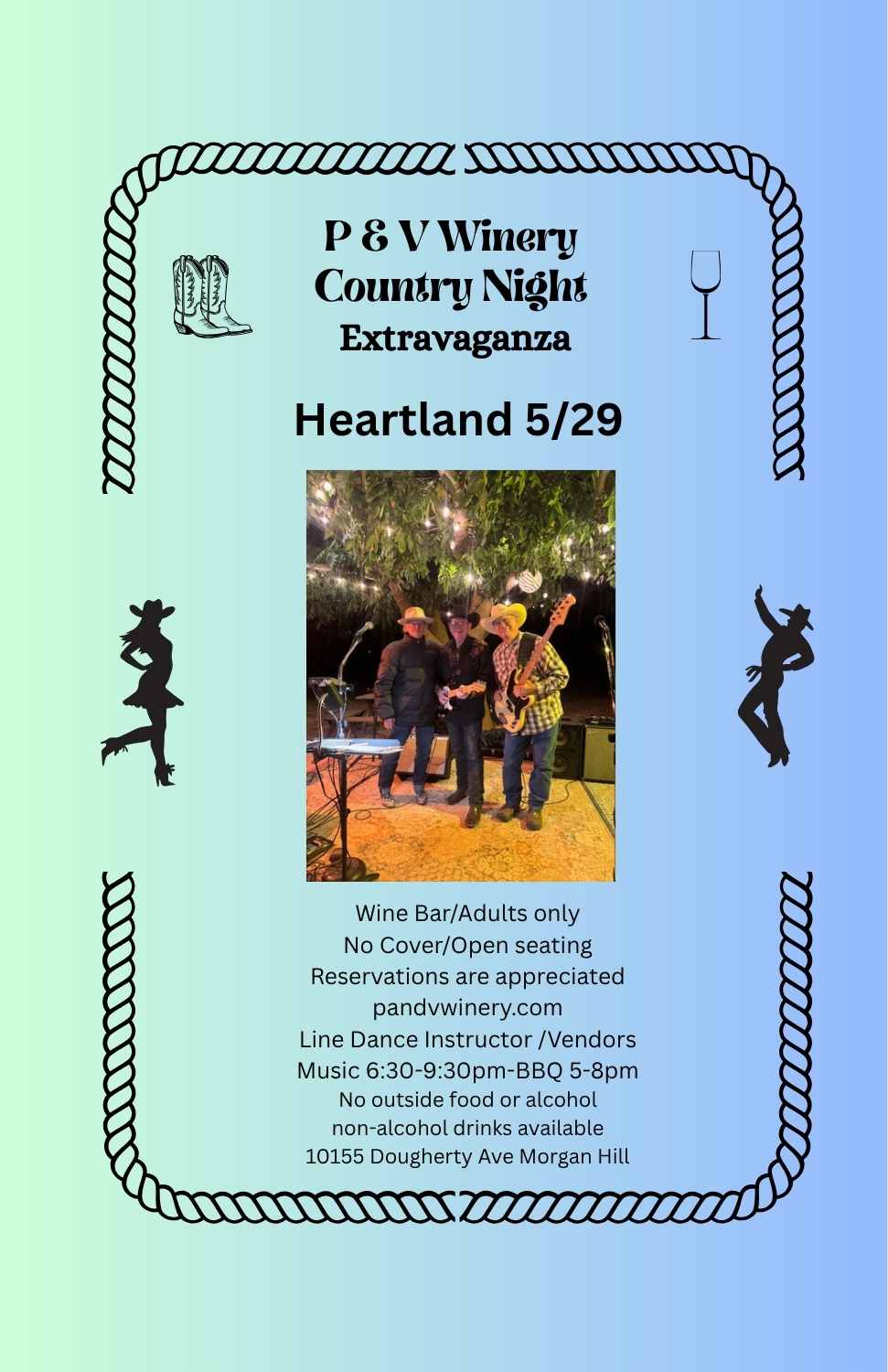 P & V Winery 10155 Dougherty Ave, Morgan Hill, California, United StatesWine Tasting, Classic Country, BBQ & Line Dancing!